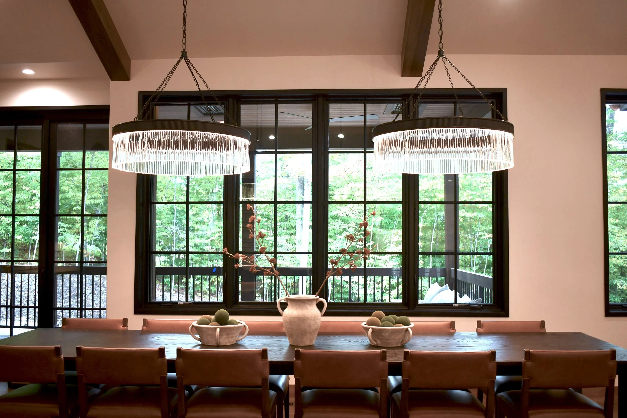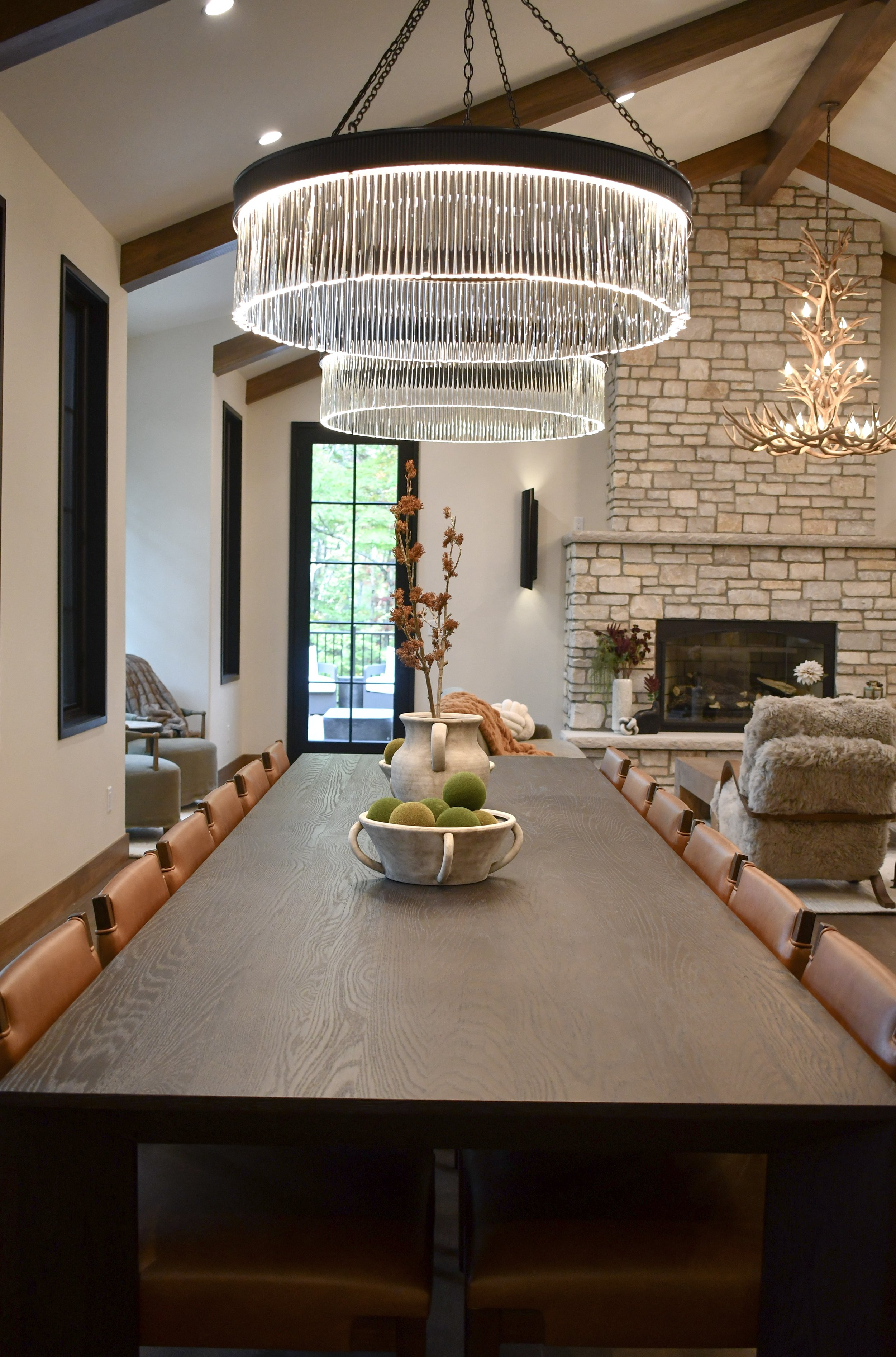 In addition to furnishings, Alcove also selected, designed, and sourced all of the lighting throughout the home. Each fixture was chosen to enhance the architecture and complement the cozy, modern mountain style — from statement pendants over the dining table to soft, ambient sconces that glow in the evenings.